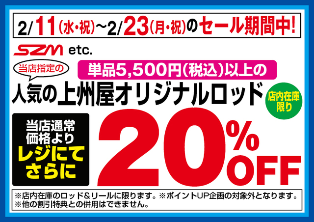上州屋のオリジナルブランドのロッドも2割引!