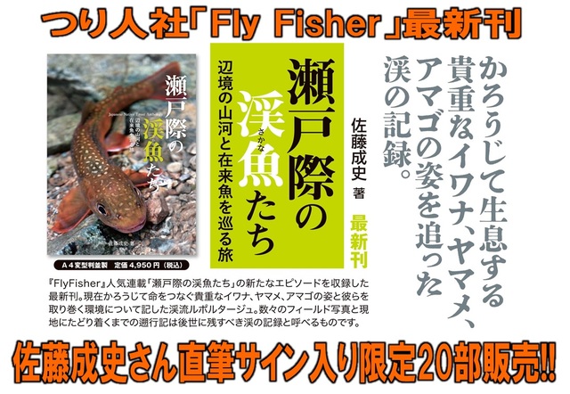 つり人社「Fly Fisher」最新刊、「瀬戸際の渓魚たち/佐藤成史さん著」が発売されたタイミングで、著者である佐藤成史さん直筆にによるサイン入り書籍を限定20部販売いたします!!