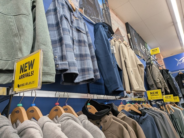 AFTCOブランドウェアを、国内本州の店頭でこれだけの数量ご覧頂けるのは、今のところ上州屋アウトドアワールド厚木店だけ!