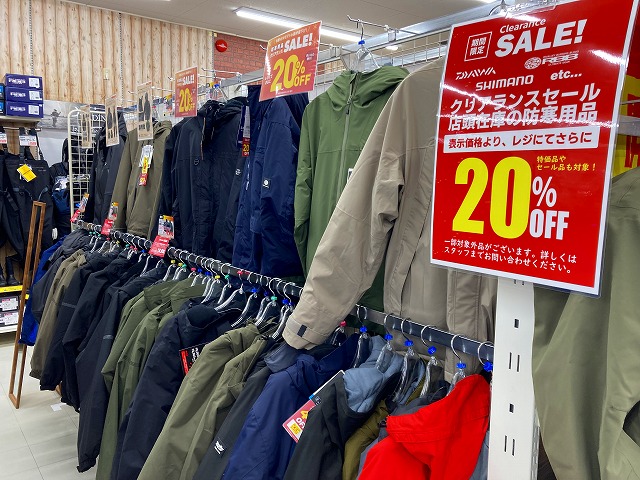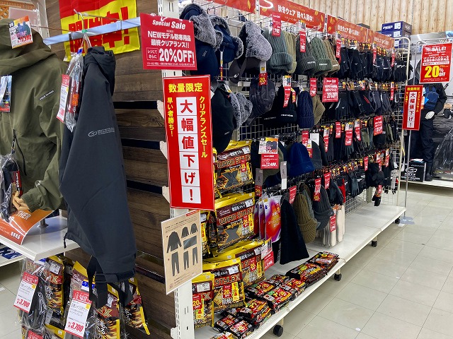 店内の防寒用品各種、レジにて更に20%OFF!