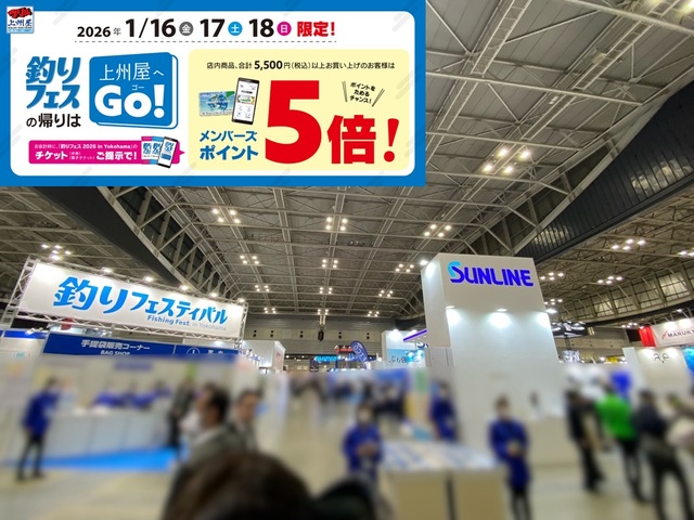 新製品のロッド&リールをご注文頂きますと上州屋メンバーズカードポイントが最大10倍!! 釣りフェスの帰りは上州屋へGO!