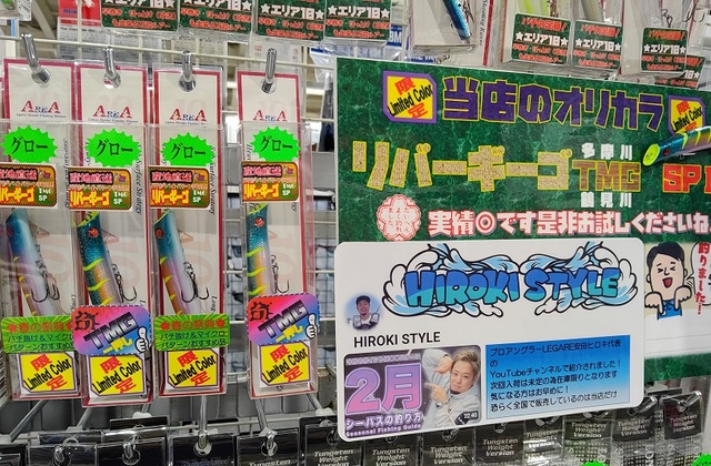 当店では多摩川シーバス「バチ抜けパターン」攻略にオススメのルアー多数取り揃え中です!SNSで話題の当店オリカラ「エリア10リバーギーゴTMG SP」も残りわずかとなってきました。ぜひ釣行ご準備にお立ち寄りくださいませ。