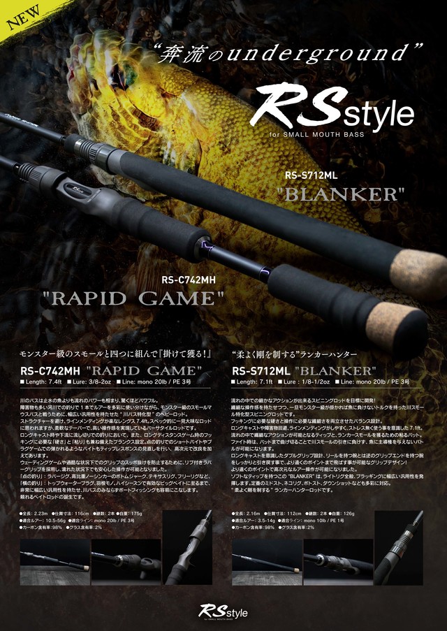 スモールマウス専用ロッドRSスタイルS712ML・C742MH入荷しました!※お電話でのお取り置き、店舗間移動はご遠慮いただいております。ご来店をお待ちしております。