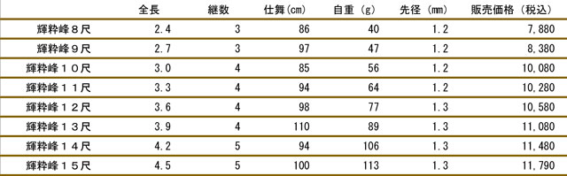 ラインナップに7尺、8尺、9尺、10尺、11尺、12尺、13尺、15尺のバリエーションを揃え、様々なシーンに幅広く対応。