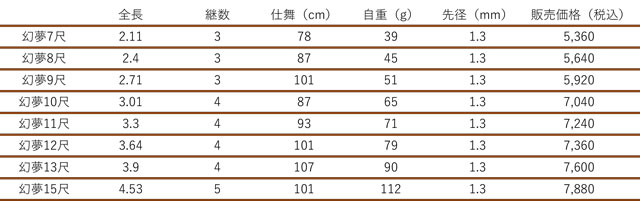 実用性とコストパフォーマンスに優れた上州屋の“styleシリーズ”より、振出竿の取り回しの良さはそのまま、きれいな“しなり”にこだわった振出し本調子へら竿「幻夢」が登場!