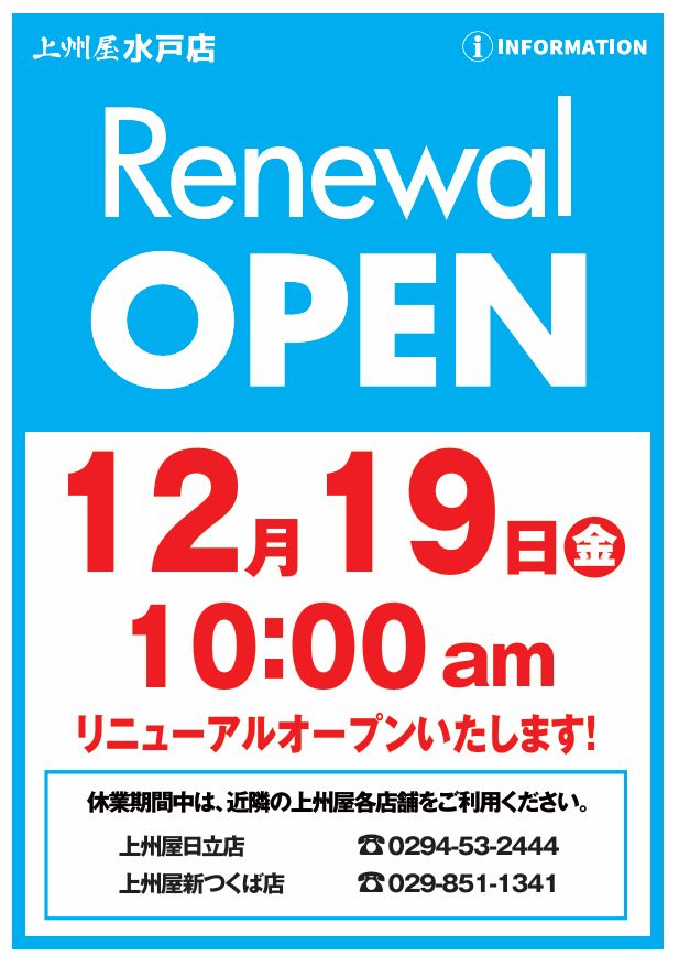 翌日の12月19日(金)よりリニューアルオープンいたします。