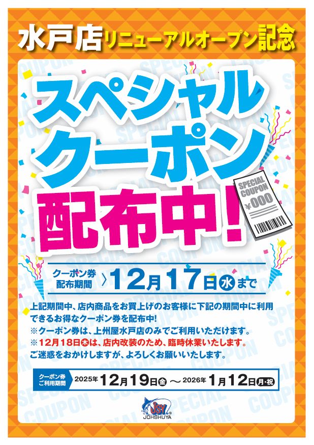 店内一部改装による臨時休業のお知らせ (2025/11/16)