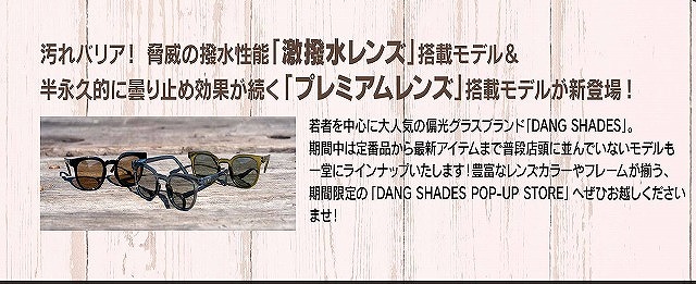 期間中は人気の「ダンシェイディーズ」偏光グラスを普段は取り扱いの無いモデルやカラーも含めて豊富に取り揃えます!