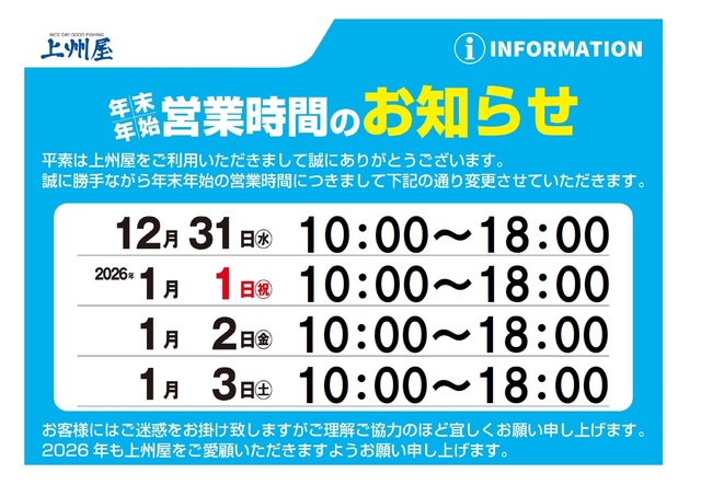 ★新春の運試し「お年玉大抽選会」1/1~4日の4日間開催!