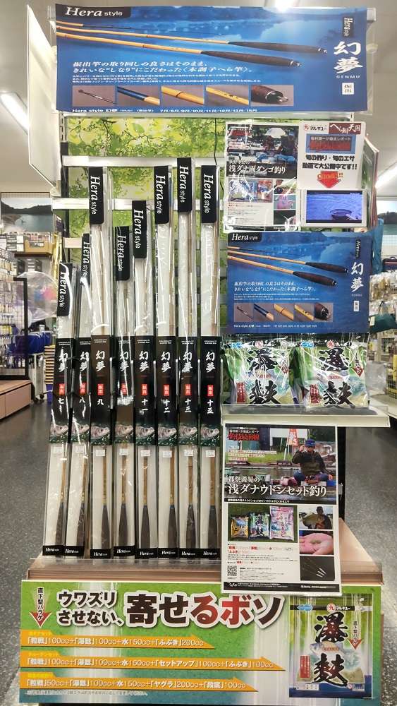 新製品も各種入荷中!乗っ込みにも使える振り出しへら竿幻夢。そして爆麩。