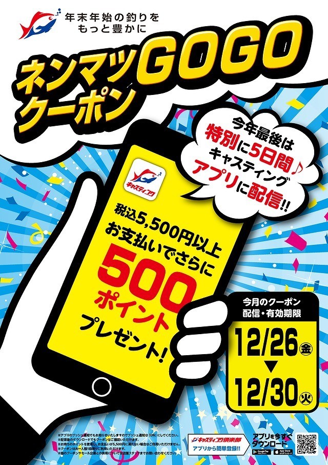 毎月最終週末のお楽しみ!!今月は特別バージョン「ネンマツGOGOクーポン」で、年末年始の釣りをもっと豊かに♪ぜひご利用ください!!