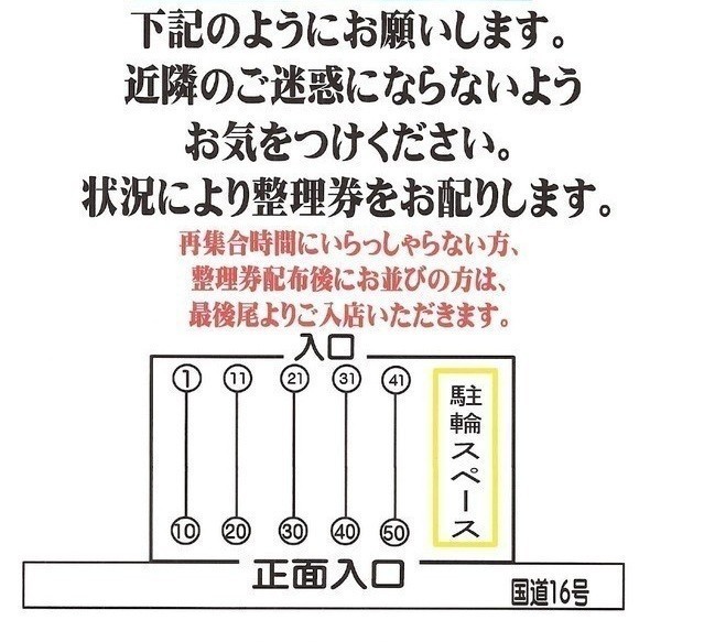 追記:トイレなどでやむを得ず列を離れる場合は、前後の方に声をかけていただき、場所を確保してください。お声掛けいただいたお客様はご協力をお願いいたします。また、お一人で複数人の確保はできません。1番号につきお一人でお並びください。