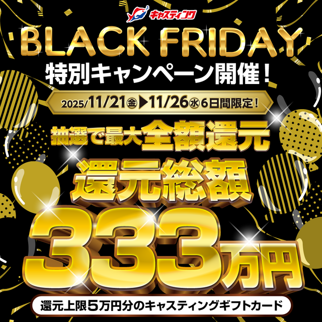 キャスティングでは、11/21(金)~11/26(水)の6日間限定で、【BLACK FRIDAY(ブラックフライデー)特別キャンペーン】開催!!