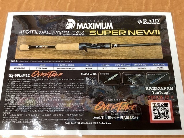 レイドジャパン 2026年新製品グラディエーターマキシマム GX-69L/MLC オーバーテイク ご予約受付中です♪