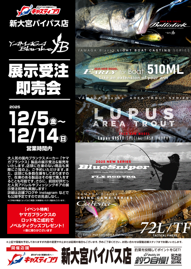 いよいよ明日からヤマガブランクス展示受注即売会を開催! (2025/12/04)