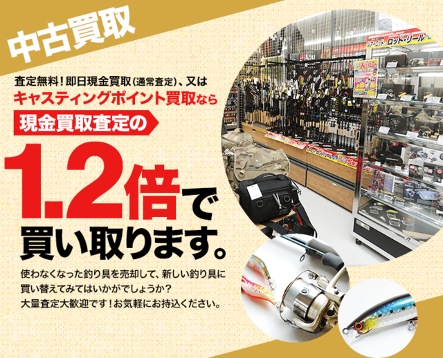 買取査定はもちろん無料!ご不要になった釣り具はお気軽に当店にお持ちください!