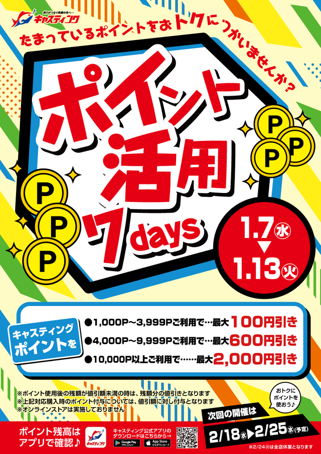 キャスティングポイントを使って、おトクにお買物ができるチャンスです!!
