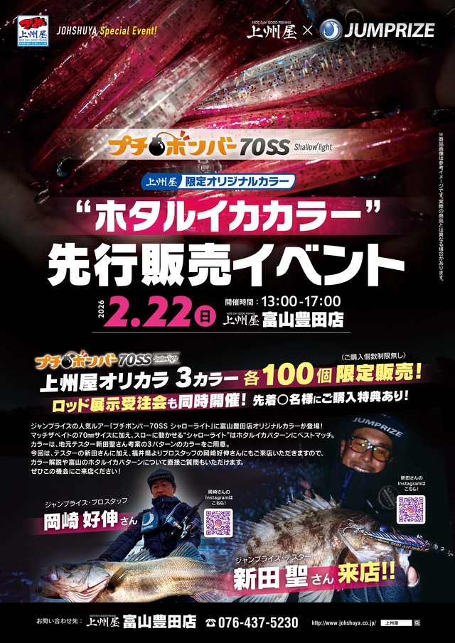 2/22(日) ジャンプライズ×上州屋富山豊田店×ホタルイカパターン先行販売イベント 続報!! (2026/2/19)