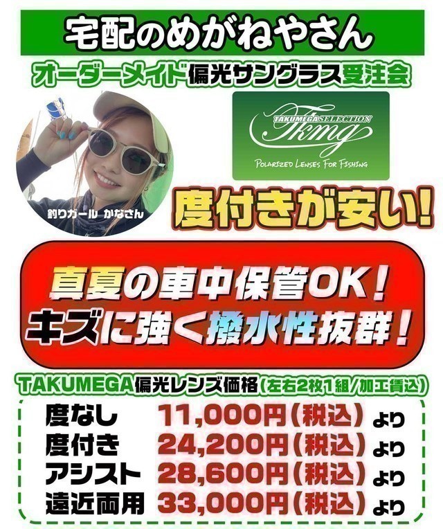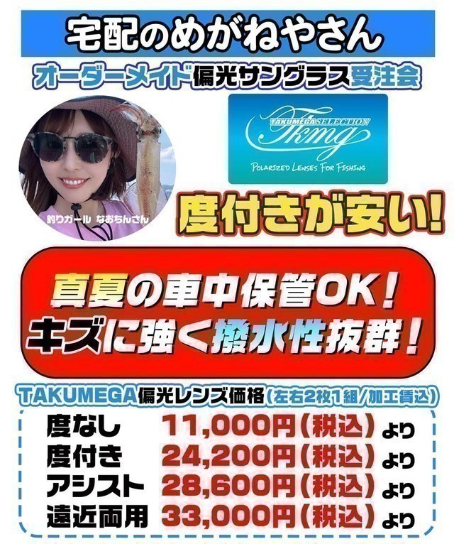 店頭には並んでいない自分に合った、度付き偏光グラスを作る大チャンスです。