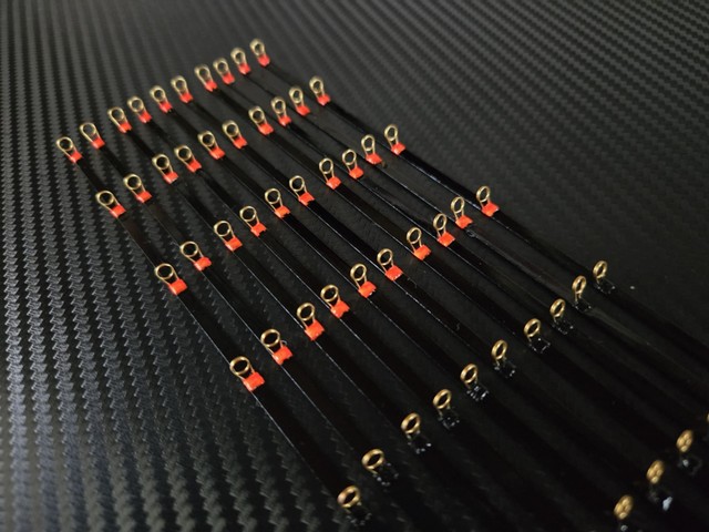 根本はパールホワイト、中間までがゴールド、先端までがブラックグラデーション塗装。