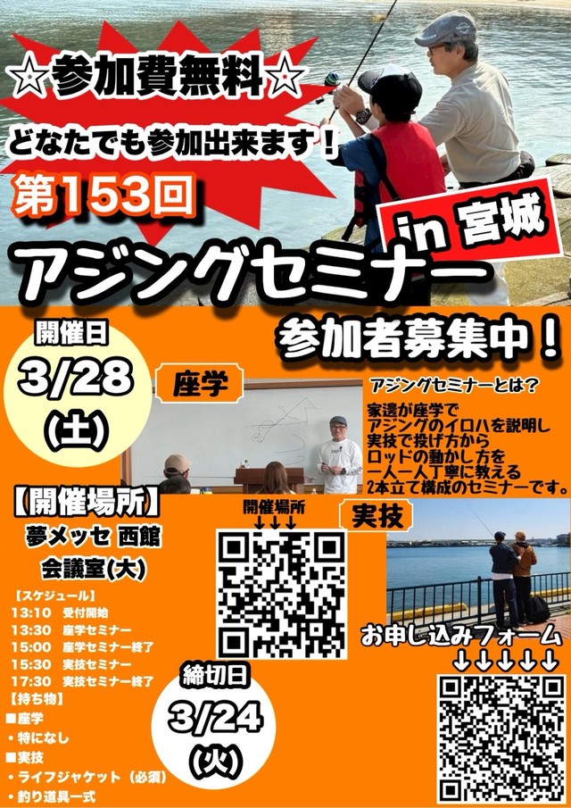 【アジング】宮城でセミナーやるみたいですよ! (2026/03/19)