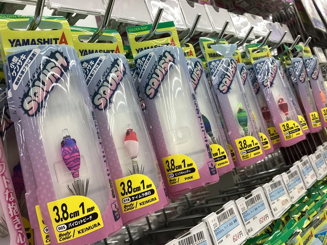 いつも泉バイパス店をご利用いただき誠にありがとうございます。 ヤマシタより「スクイッシュ」の新サイズが入荷しました。 マルイカ・小型ケンサキイカに特化した3.8cm&5cmの2サイズ!! ケンサキ攻略の幅がグッと広がります…! 今ならカラーもしっかり揃っています!ご入用の方はお早めに!!