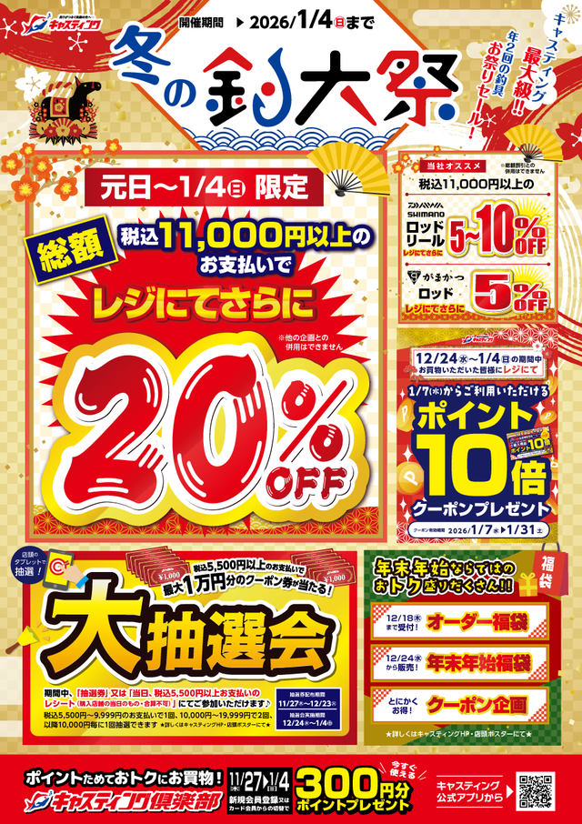 抽選会は本日1/4(日)が最終日!抽選権をお持ちの方!アプリクーポンを使っていない方はご来店を! (2026/01/04)