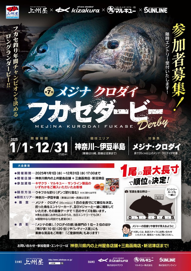 只今開催中の「第7回 メジナ・クロダイフカセダービー」もいよいよ今月末までとなりました!