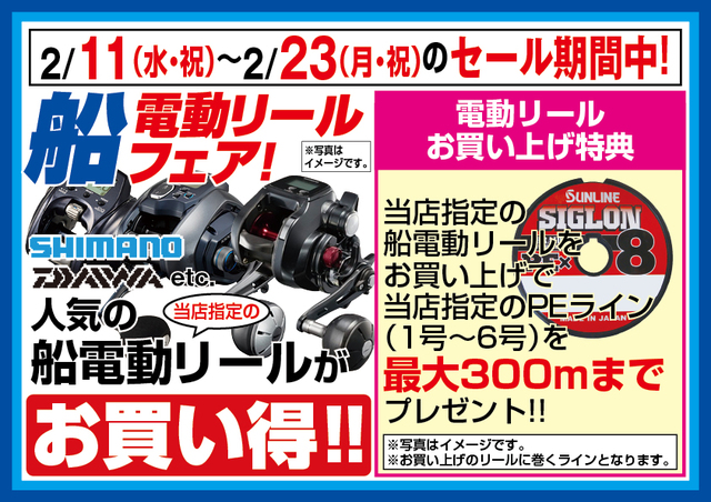 電動リールをお買い換え予定の方は是非この機会にどうぞ!