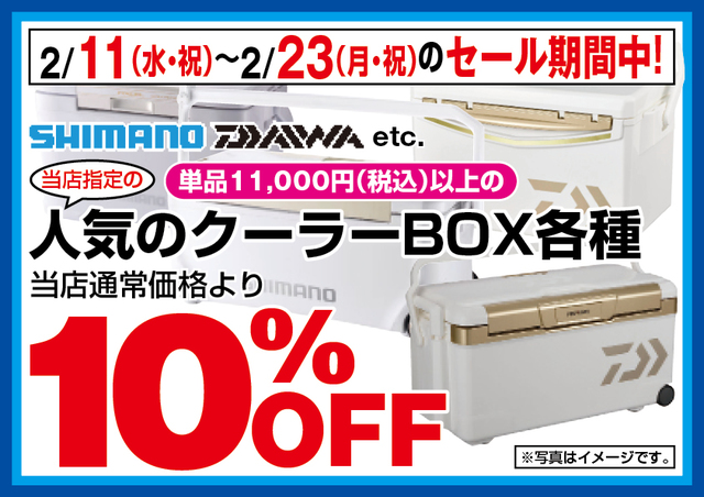 当店指定の¥11.000(税込)以上のクーラーボックスがレジにてさらに10%OFF!
