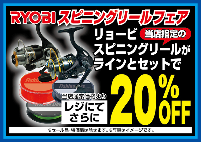 リョービのスピニングリールがラインとセットでレジにてさらに20%OFF!