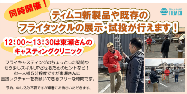 さらにティムコさんの新製品や既存品のタックルも展示&試投できますので是非この時間内をご利用ください。