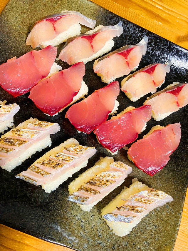これは少し前に作った、アジ、ワラサ、タチウオのお寿司。ハマってます!