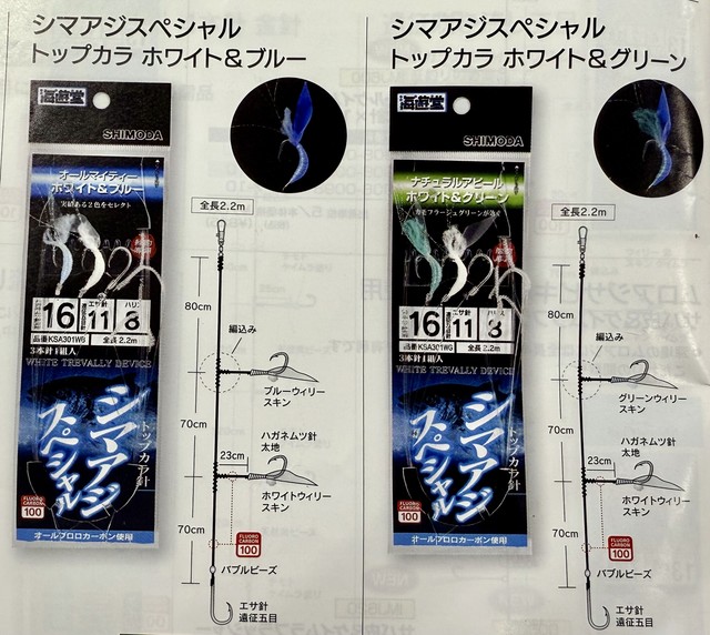 をお借りして実釣してまいりました! 私は前モデルのリーディングスリルゲーム64MH-195をシマアジ釣りでも愛用しておりますので、今回新しくなった同じ番手のものを違いを確かめたくてお借りして使ってみました!💡 前モデルとの違いは、細身で軽量ながらも更に強度が増して、コマセワークがよりやりやすく、感度も向上したイメージでした。 朝一が勝負だと船長から聞いていたので、今か今かと待ち構えておりましたがなかなかアタリはなく少々不安になっていると、反対舷でHIT!2㎏overシマアジがあがりました!仕掛けは下田漁具ブルー&ホワイトのウィリー&空バリの仕掛け、ハリス8号とのこと!