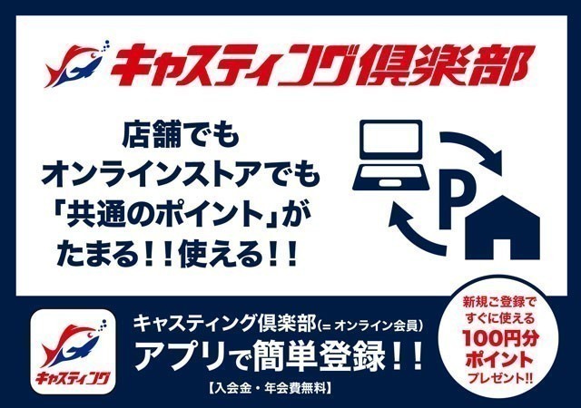 閉店後も、キャスティングポイントはキャスティング全店とオンラインストア共通でご利用いただけます。青いメンバーズカードをお持ちの方も、キャスティング全店でご利用いただけますが、この機会に便利な「キャスティング倶楽部」へのご登録をおすすめいたします。