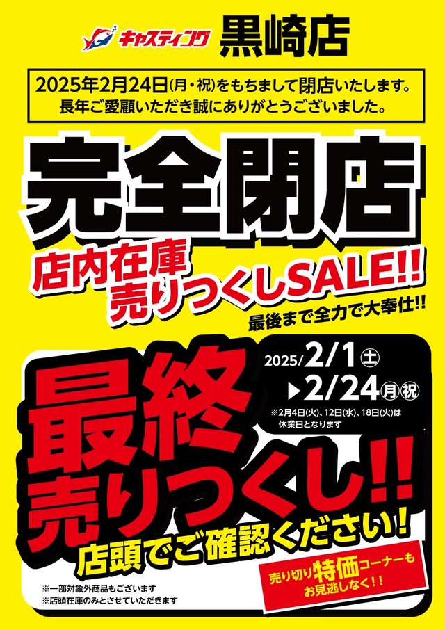 ★お知らせ★キャスティング黒崎店は2025年2月24日(月・祝)をもちまして【閉店】いたします。 (2025/02/24)